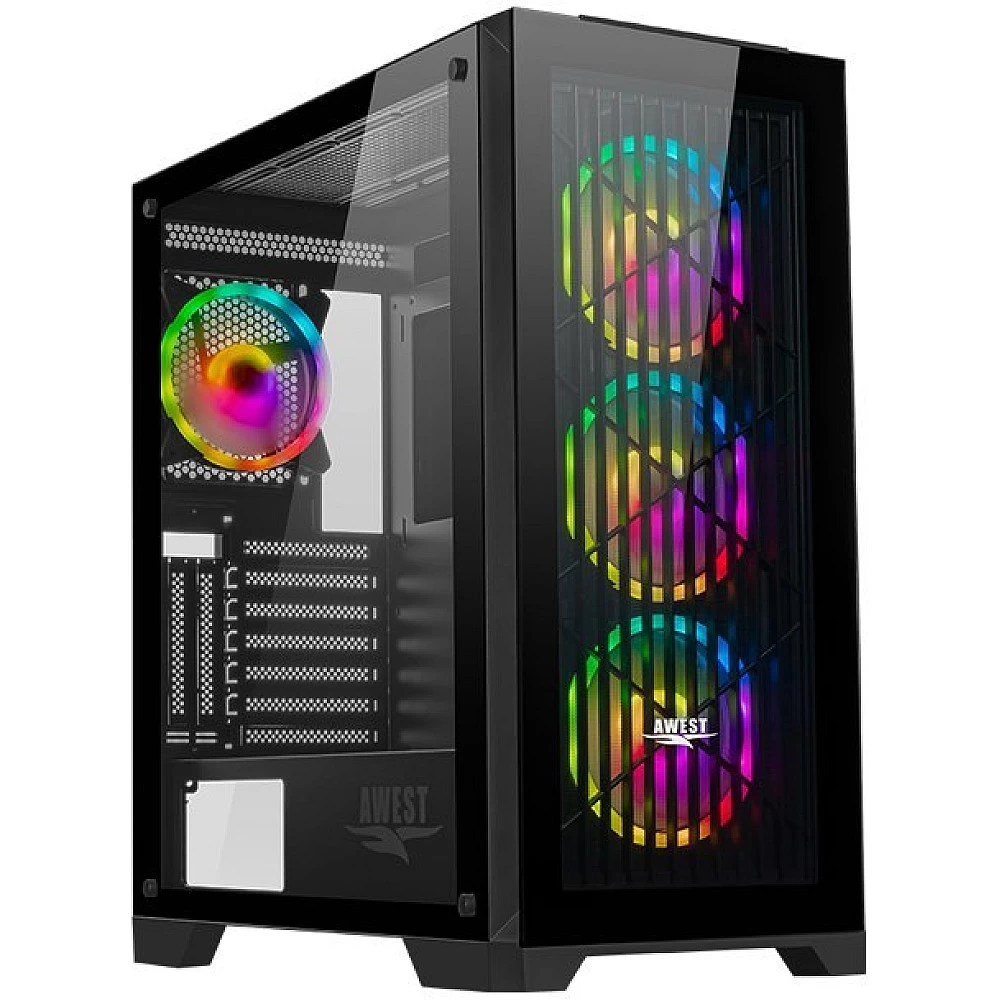 | کیس (بدنه و ظاهر دستگاه) / Case | Case AWEST AV312 دارای 1 عدد فن ال ای دی 12 سانتی ARGB در پشت کیس، 3 عدد فن ال ای دی 12 سانتی ARGB در پنل جلو . پنل جلو درب شیشه ای به همراه ریموت کنترل برای تنظیم نور پردازی و تهویه کیس نورپردازی با قابلییت سینک شدن |