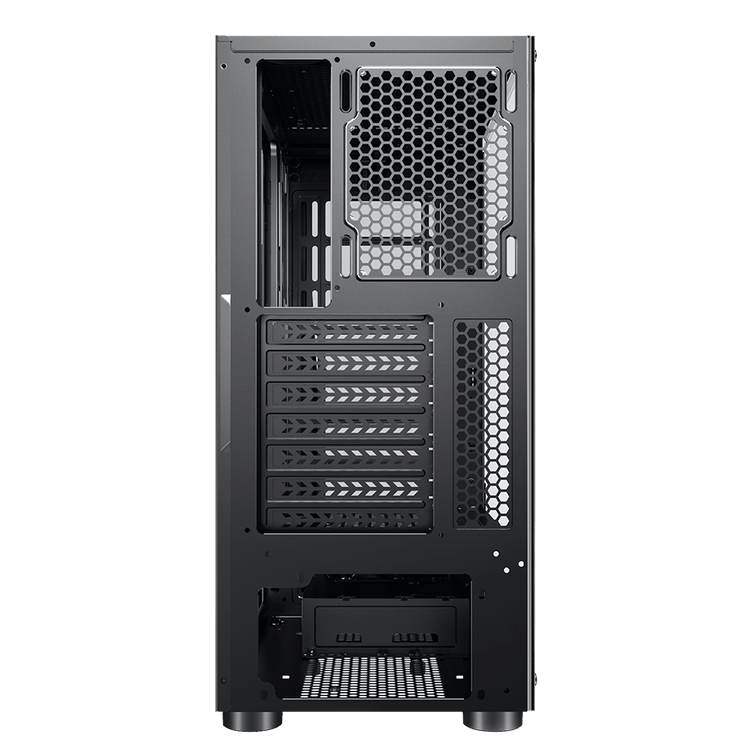 در بالای پنل جلوی کیس اوست GT-AV02-BG، دو عدد پورت USB2.0، دو پورت USB3.0، یک درگاه AUX و یک جک 3.5 میلیمتری میکروفن قرار دارد. بنابراین میتوان بدون نیاز به پنل پشتی مادربرد از این درگاهها به آسانی استفاده نمود.