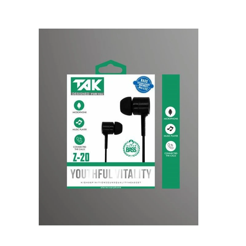 هندزفری TAK مدل Z-20 محصولی با کیفیت ساخت معقول ( در مقایسه با قیمت ) است که از کیفیت کابل اتصال قابل قبولی بر خوردار است - همچنین بر روی کابل این هندزفری یک میکروفن جهت پاسخگویی به تماس های ورودی و یک دکمه برای اتصال این کار تعبیه شده.