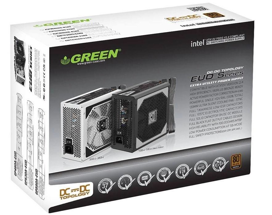 مشخصات کلی استانداردهای حفاظتی: OVP, UVP, OCP, OPP, SCP, OTP, NLO, SIP کانکتور 15 پین SATA: شش عدد جریان ۵+ ولت استندبای: ۲.۵ آمپر جریان ۱۲- ولت: ۰.۳ آمپر جریان ۱۲+ ولت اول: ۴۸.۳ آمپر جریان ۵+ ولت: ۲۰ آمپر جریان ۳.۳+ ولت: ۲۰ آمپر محدوده فرکانس ورودی: ۵۰ هرتز سایز فن: ۱۲۰ میلیمتری کانکتور ۴ پین فلاپی: یک عدد تعداد فن: یک عدد کانکتور 2+6 پین PCI-E: دو عدد کانکتور 4+4 پین E-ATX / ATX: یک عدد کانکتور مادربرد: ۲۰+۴ پین قابلیتهای منبع تغذیه کامپیوتر: Active PFC نوع پاور: غیر ماژولار گواهینامه 80PLUS: Bronze عمرمفید در شرایط استاندارد: ۱۰۰,۰۰۰ ساعت دامنه دمای محیط کاری: ۰ تا ۴۰ درجه سانتیگراد تنظیم اتوماتیک دور فن: SNTC بی صدا پشتیبانی از فیلترینگ ورودی EMI طول کابل های اصلی خروجی: ۴۵ سانتیمتر نداشتن محدودیت در بارگزاری متقابل (Cross-Load) کابلهای اصلی از نوع تخت پشتیبانی از توپولوژی DC-DC محدوده ولتاژ ورودی: ۲۰۰ تا ۲۴۰ ولت کانکتور 4 پین Molex: سه عدد